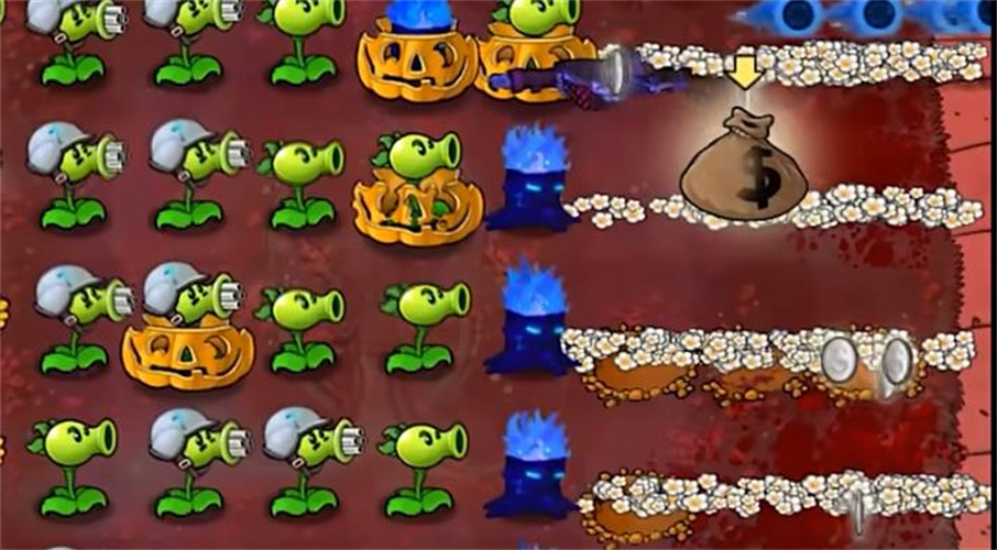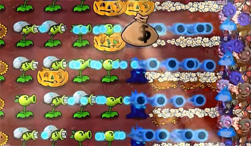 3、火弹炮首先我们在最后一排种上高坚果先,然后再套上一个南瓜头,后面的全部种植四发豌豆射手,这样的话攻击伤害是非常可怕的,僵尸别说想要啃一下南瓜头,还没有碰到的时候就已经被杀死了,像一下比较肉的僵尸都没有办法存活!