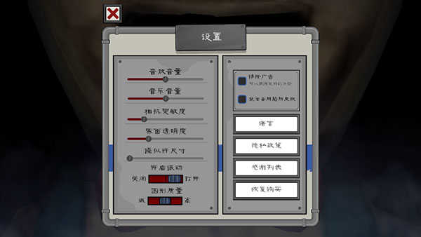 2、进入设置,可以设置音乐、相机灵敏度等游戏参数