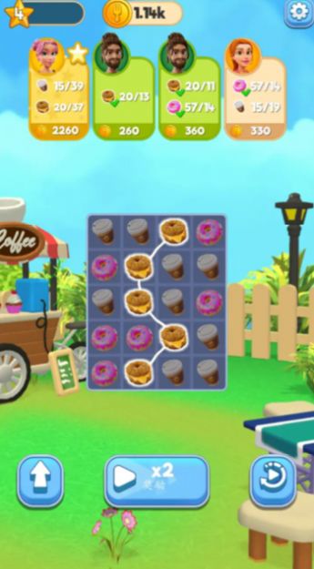 1、连接相同的食材消除它们,完成订单和挑战关卡,尝试各种美味的食品;