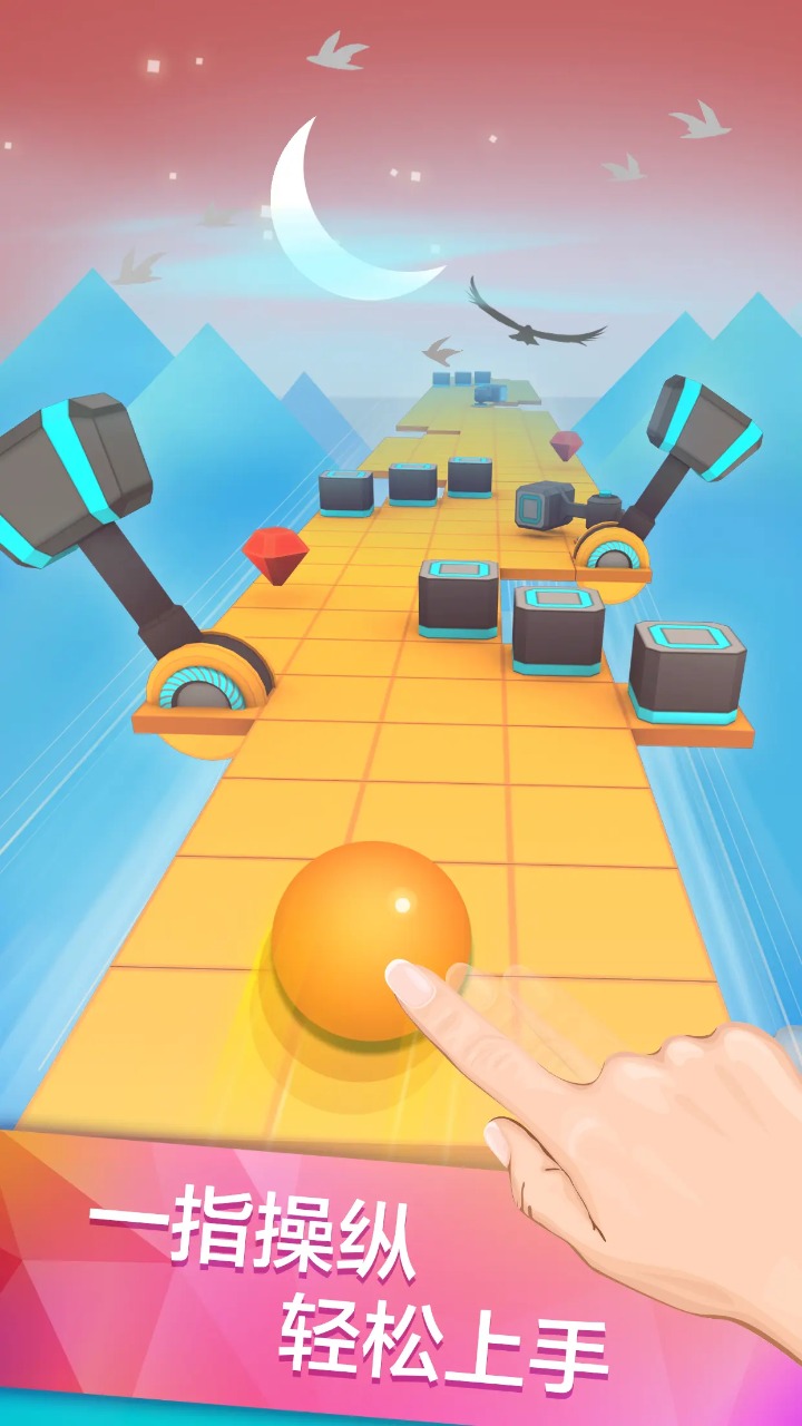 4、操作简单、一键式上手,只需左右移动小球避开障碍物、陷进等不要松手。