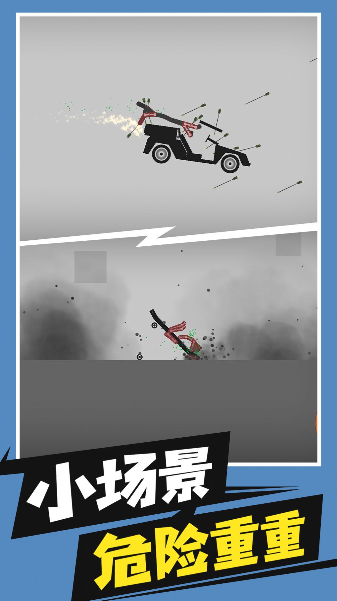 3、各种冒险元素,跑酷、撞墙,打破骨头,摧毁车辆等都可以成为一部分;