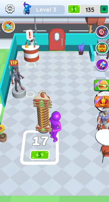 与其他餐厅竞争时,可以让你的僵尸杀死他们,收集奖励点。