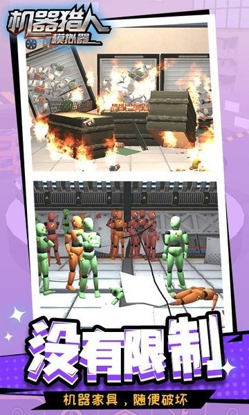 机器猎人模拟器是一款非常解压的手机破坏游戏,在这款游戏中玩家们能够享受到最优质的破坏游戏体验,游戏拥有各种的模拟场景,各种的火柴人、家居等等你来来破坏,游戏里你能够放置各种的爆炸物品来观察整个房间被爆破的快乐,还能够拿上枪械来扫射地图上的火柴人,更多游戏体验等你下载感受。