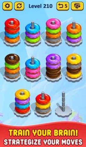 1、游戏可以完成新的甜甜圈堆叠挑战,挑战多达100个不同的关卡。