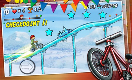 2、3种不同地形,75个关卡,多种精彩技能让你体验骑行的乐趣。