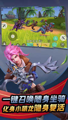游戏创新加入RPG元素,独创随身恐龙坐骑,不再为载具寻觅而困扰,一键召唤策马奔腾!吃鸡游戏全新突破,不再落地成盒!死亡化身小萌龙,坚持躲避逃跑就能原地复活!更有趣味“捉迷藏”玩法等着你,小心那些石头、树木,可能它们就是“敌人”的化身!
