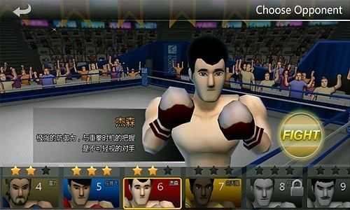 完美呈现超爽打击感,无限连击、一击秒杀,配合智能手机的体感功能,带给你前所未有的畅快游戏体验。拳击手专属动画、多种晕眩状态,无论是人物刻画还是角色脸上诸如血迹、伤痕都完美呈现了拳击台上那令人热血沸腾的情景。角色阵容强大,十个关卡中,来自世界各地、不同风格的超级拳击明星,与你一起争夺金腰带。评星系统、成长系统,通过修炼来实现自己成为世界一流的拳击手。