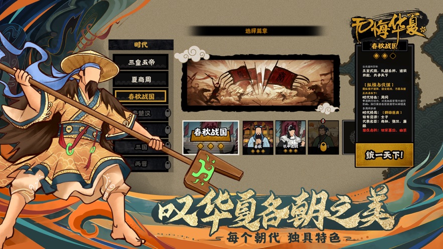2、全新的玩法内容,完美展现极具每个时代的人物角色的不同。