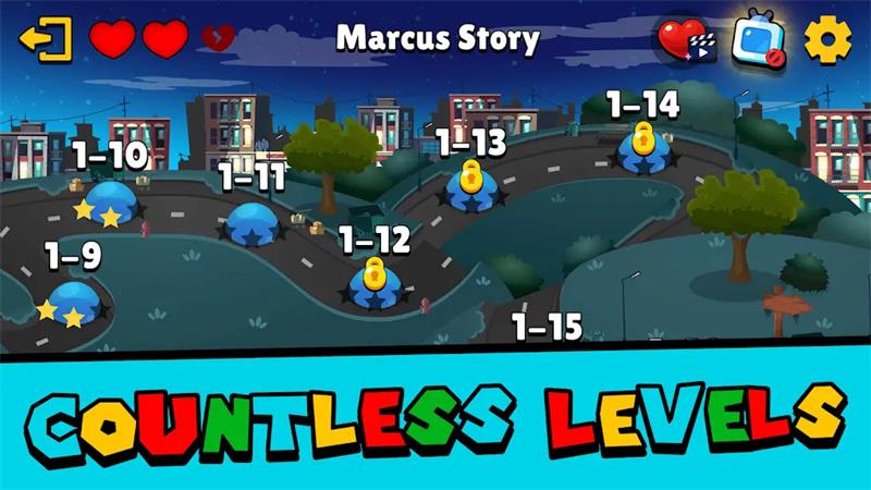 2、多样的关卡:游戏中有丰富多样的关卡设计,每个关卡都有不同的地貌和障碍物,玩家需要灵活运用兜帽兄弟的技能和道具来解决各种问题。