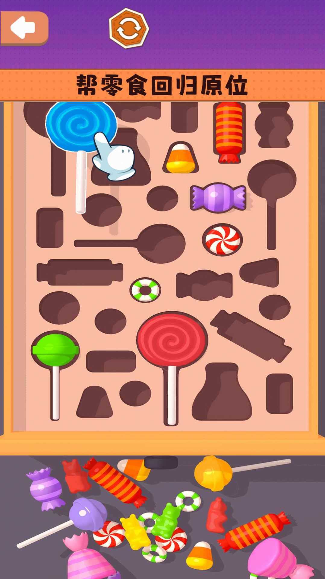 向左一点点是一款特别考验玩家智力的放置游戏。本游戏包含多种糖道具。玩家需要将这些糖道具准确地放置到不同的模型中。整个落位过程是对选手能力的一次特殊考验。目力所及,每颗糖的形状和大小都不同,只有找到相应的位置才能成功放入,而且每个关卡都包含不同的道具内容,玩家可以尽情挑战每个关卡。