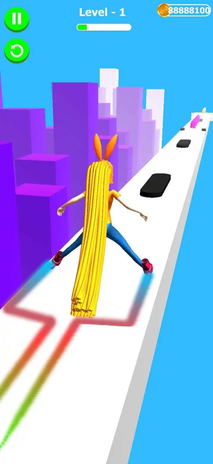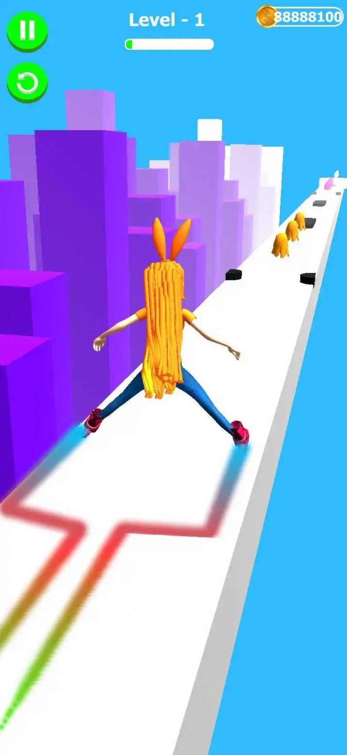 1、头发挑战跑步者是一款有趣的跑酷模拟趣味的游戏。