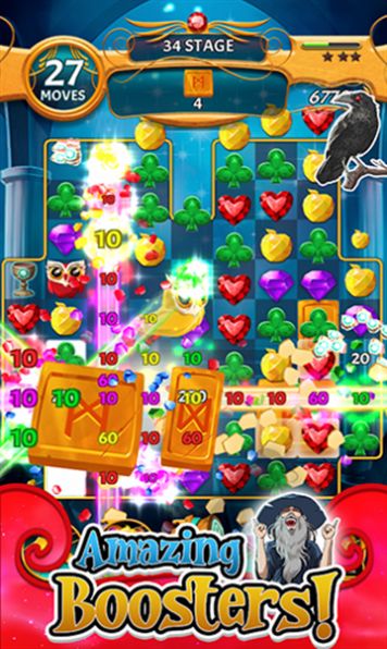 1、华丽宝石设计,独特三消拼图,创造视觉与挑战乐趣。