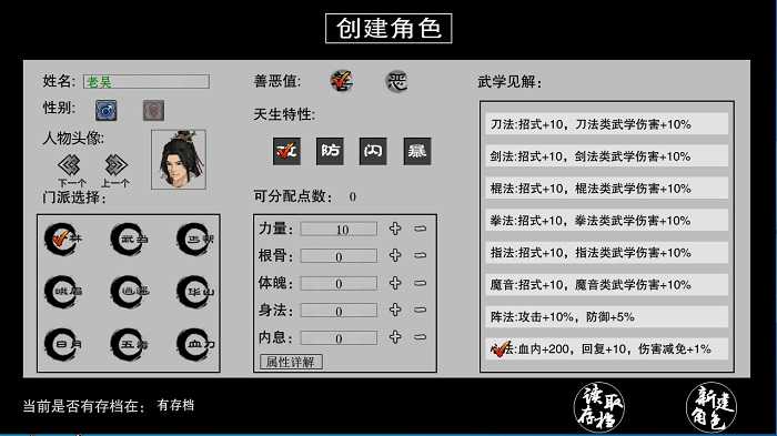 男剑:外功+1内功+1。女剑:内功+1,闪避+1