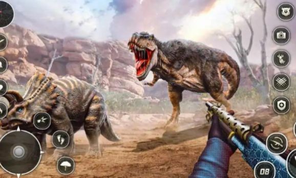 2、用你的狙击技能挑战大自然的顶级猎物,你将需要使用狙击枪,接近恐龙,追踪它们的踪迹,选择最佳的射击时机击杀;