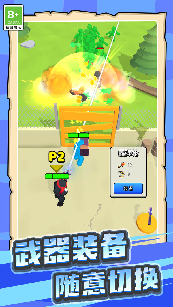 2、有各种不同的武器和装备,如手枪、步枪和炮塔等,选择最适合自己的装备;