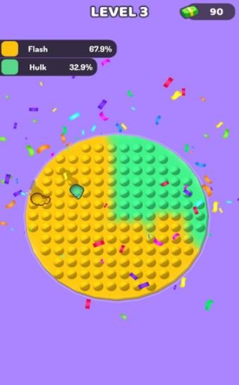 2、踩泡泡比赛游戏中玩家们踩完所有泡泡后,如果比对手的区域大就能赢。