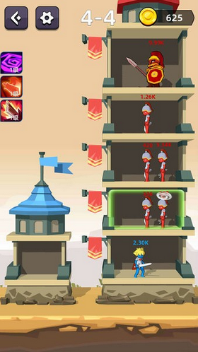 3,左边的蓝色城堡是我们的营地,右边的红色城堡是敌人的营地,每个关卡分为四个小关卡,逐一通过都是一次成功的挑战哦。