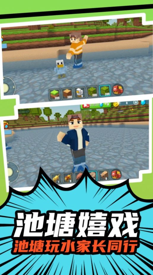 1、通过不同颜色、形状、大小的方块的组合,建造任何自己想要的建筑;