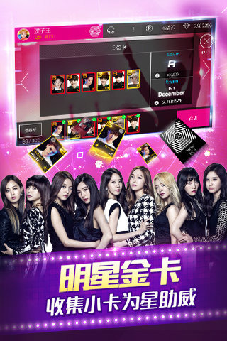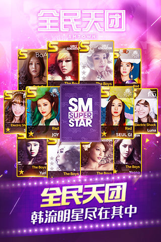 全民天团是一款高品质的手机音乐游戏,在这款游戏中玩家们能够享受到超多的明星卡片角色,在这里你要选择你自己喜欢的明星在这里进行趣味的养成玩法,在这里打造自己的超级巨星,游戏拥有独特的音乐玩法,通过指尖来控制音乐节奏,制作出更高品质的音乐,赶快下载体验吧。