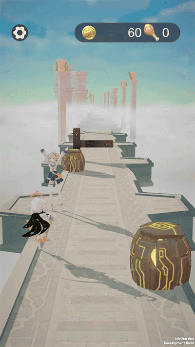 派蒙跑酷原神版是一款以原神中的派蒙为主角的跑酷闯关游戏。玩家将操控派蒙通过躲避障碍物来一路向前,最终闯关成功。在跑酷的过程中,玩家还会遇到原神中的许多角色,触发不一样的事件,获得更多的摩拉或生命值。合理运用这些资源,能让你的奔跑更加顺利。