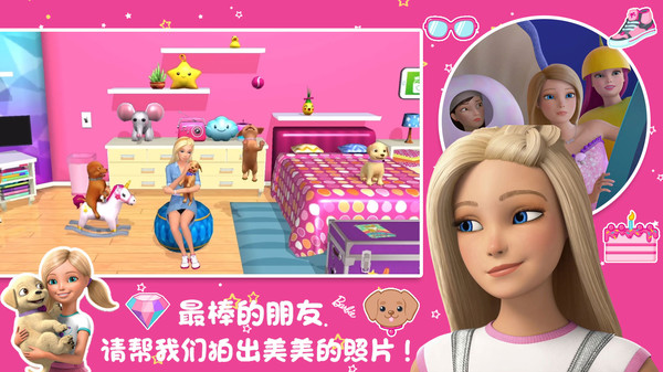 3、玩家在芭比公主时尚豪宅游戏之中作为一名芭比娃娃,通过完成任务获取的奖励将我们的主角打扮的更加漂亮。