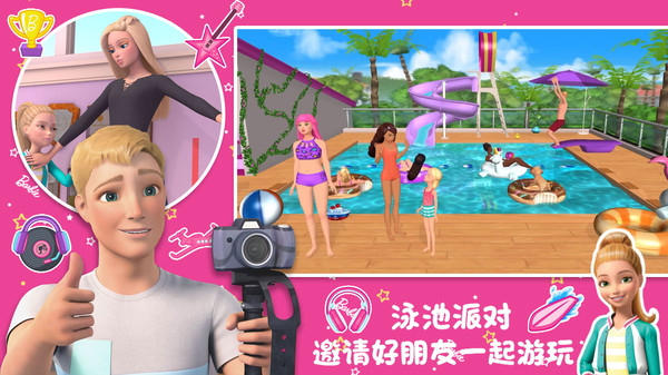 芭比公主时尚豪宅是一款非常优质的手机公主模拟生活题材游戏,在这里玩家们能够体验到公主的日常生活,在这里举办各种聚会派对,邀请自己的好友来到你的家里狂欢,在这里超大的花园,游泳池,庞大的房间都能够让你聚办各种的聚会,游戏还能够对重要的时刻进行拍照留念,游戏还拥有各种的装扮玩法,赶快下载吧。