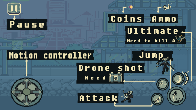 1、操控武士闪光飞跃街头巷尾,避开各种危险和敌人的追捕;
