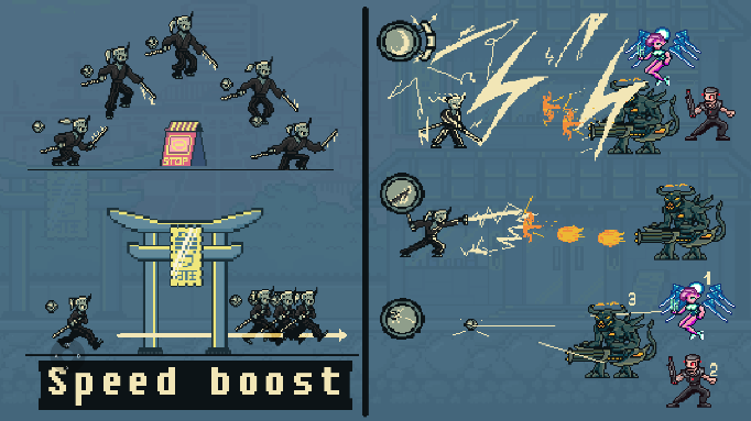 武士闪光跑酷游戏是一款割席的动作冒险手游,通过精美的像素艺术场景带领玩家进行惊险刺激的奔跑冒险。在游戏中,玩家将扮演武士闪光,穿越各种充满挑战和惊喜的关卡,躲避障碍物和敌人的追击,同时利用武士闪光独特的跳跃、翻滚和飞行动作来克服困难。