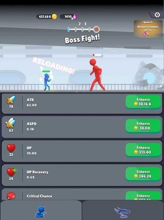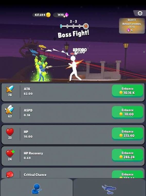 3、通过战斗和通关,你的火柴人战士将逐渐成长,提升属性和技能,变得更加强大;