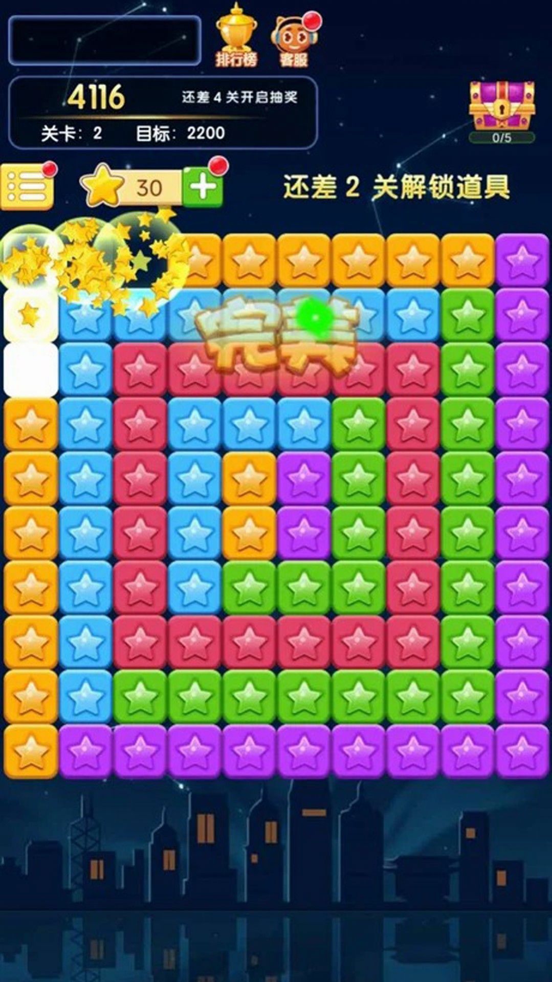 2、你需要点击两颗或两颗以上相邻的星星,以消除它们,这种创新的玩法带来新鲜感;