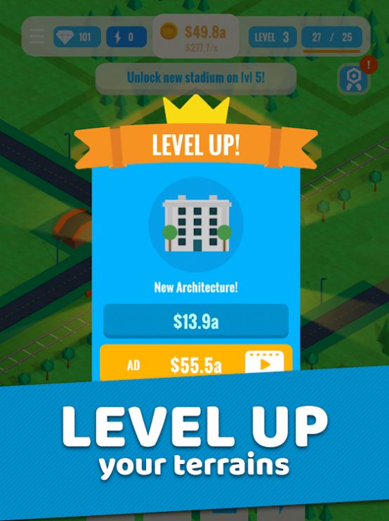 空闲体育场建设者带给玩家们极高的自由度玩法,在这里你们将成为一名超级富豪,为了使自己的城市变成一座极其富饶的地方,你需要不断地进行建设,首先需要打造一座巨大的体育馆,供城市中的居民进行体育运动,让它们的身体能够变得更壮,以便更好地进行劳动,快来下载游戏试一试吧。
