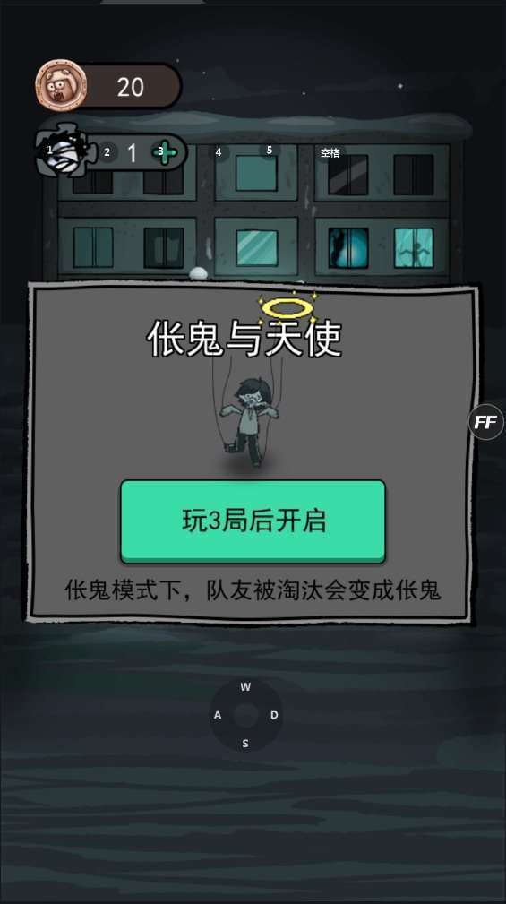 弱弱提个简单的通关方法,就是选个房间,能照顾旁边一个小伙伴(人机),然后,两个人把鬼杀了(你要多造防御塔,前面掉血,它会浪费时间回血,嗯哼,也可以多关注它的行踪)。