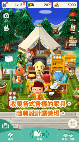 1、动物之森口袋露营下载中文版是一款以动物岛经营为核心玩法的策略经营模拟游戏。