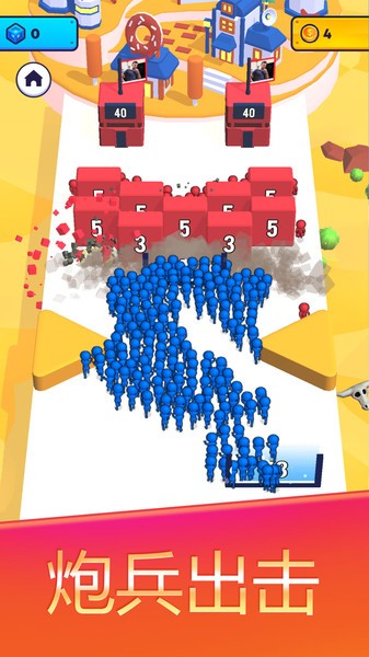 3、避开路上的障碍物与对面的敌人会面,扩大你的队伍消灭敌人,升级你的炮塔以获得更多的炮兵。