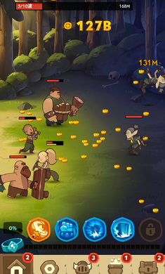 玩家通过点击屏幕来获取金币来杀死敌人,这样他就可以得到第一个英雄。