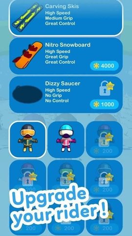3、也可以升级角色,解锁新皮肤。丰富的角色和特殊的雪橇,各种雪橇看起来更酷。
