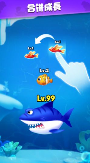 3、收集各种无家可归的鱼类,通过合并和战斗,成为世界上最大的鱼群;