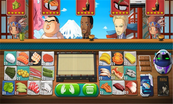 3、轻松有趣的模式,在其中各种类型的寿司都可以让玩家来亲自上手来制作。