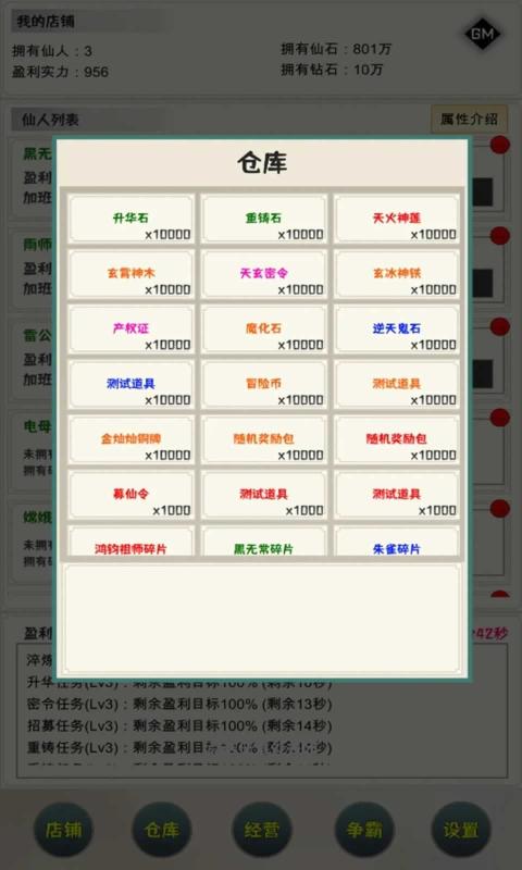 与其他经营类游戏不同的是,仙界当富豪还增加了角色养成的元素,玩家可以通过招募仙侠角色并进行培养来提升自身的实力;