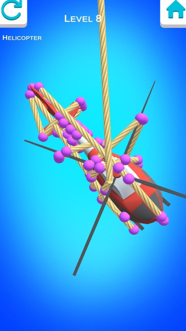 1、绳索解除是一款游戏玩法多种多样,方式新奇的休闲娱乐益智游戏。