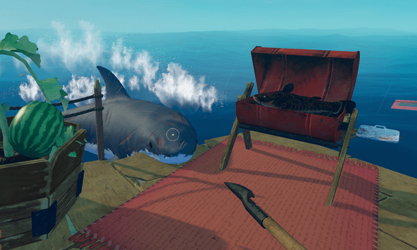 最开始的计划,出生时你只有4个板子活动空间加一个钩子,鲨鱼会不定期的咬你的板子,如果你采取不抵抗态度,鲨鱼是不咬烂一块不罢休的。所以尽快用你手头的钩子勾取资源,水上资源分三类: