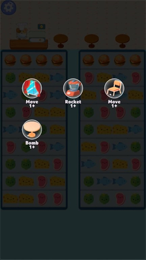2、玩家通过消除相同的食物来完成任务,赚取金币和经验值