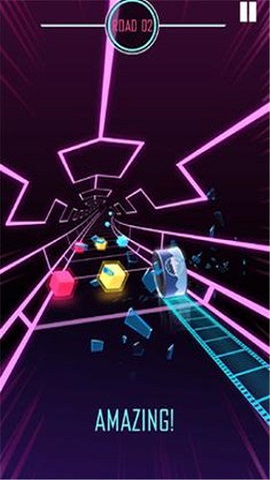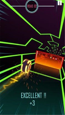 3、游戏那些向左和向右滑动以控制沿着充满彩色障碍物的道路的滚轮,完成游戏中的考验。