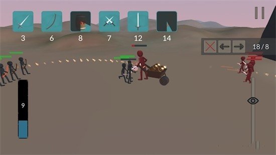 3、玩家只需指派各种类型的火柴人战士来和敌人进行战斗