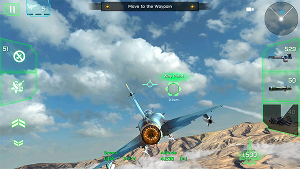 玩家可以解锁不同的导弹轰炸敌人,游戏里的场景非常的真实,在驾驶飞机进行射击的过程中非常的热血。