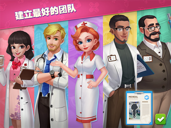 3、年轻、充满活力的护士米娅将加入你的团队,还有来自世界各地的精英医生