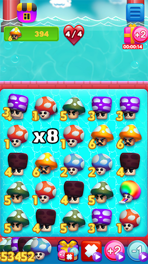 2、相同类型的蘑菇可以合并形成更高级别的蘑菇类型