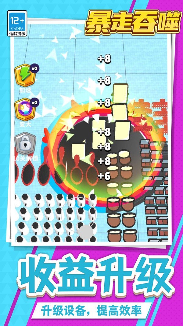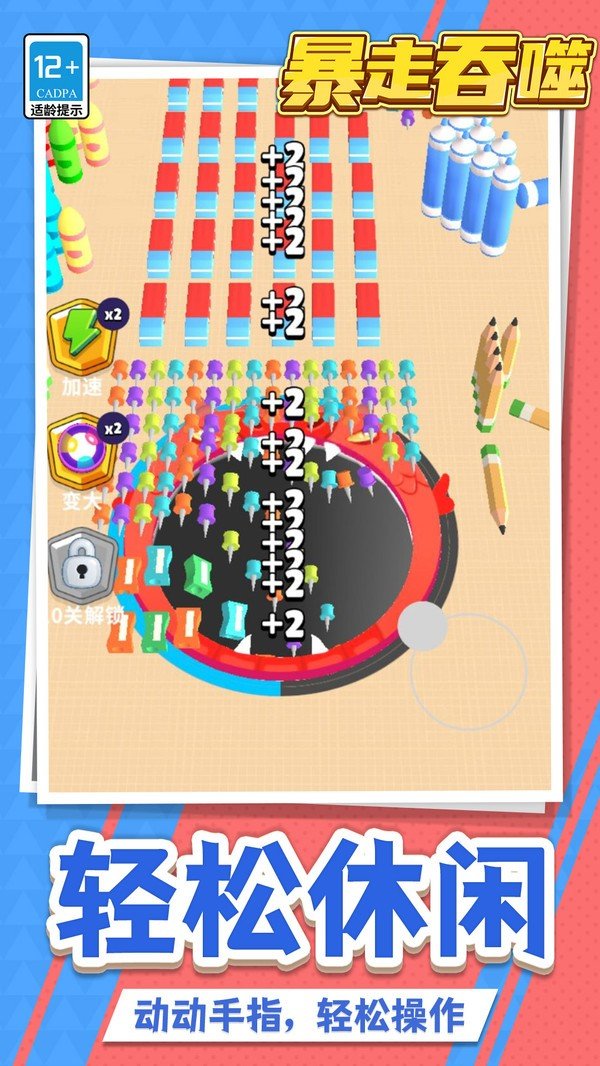 1、暴走吞噬是一款疯狂刺激的手游。在这个游戏中只需要通过灵活的手指滑动屏幕。