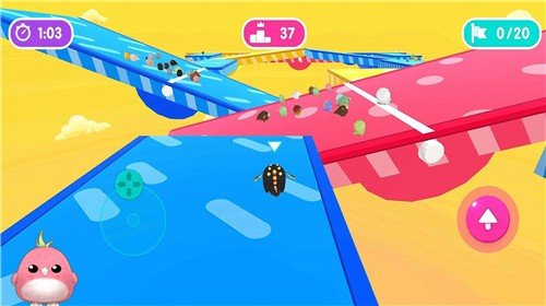 2、精美卡通画风打造,玩家可以自由都和其他玩家竞技对战,不断闯关就能解锁全新地图。