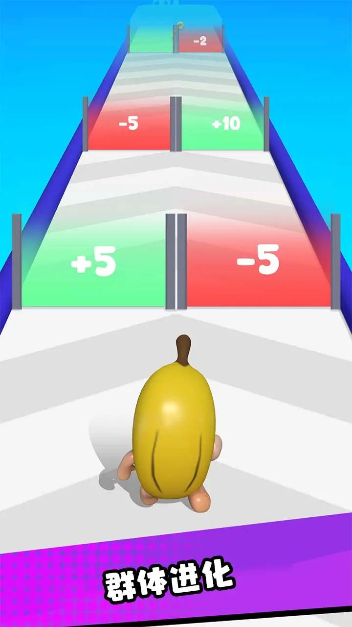 2、你的目标是快速奔跑,收集这些奇怪可爱的怪物,成为猫香蕉进化大师